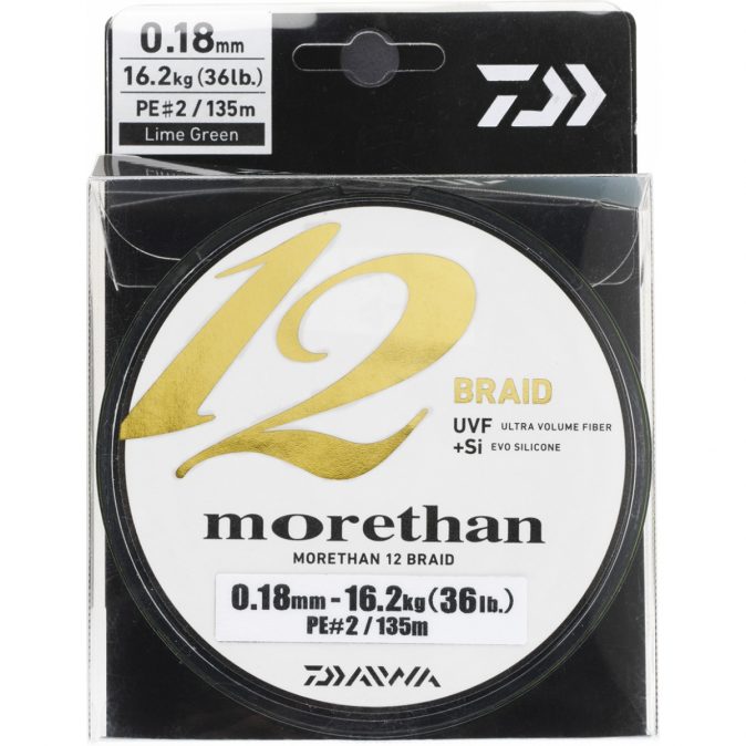La MORETHAN 12 BRAID est le pendant de la SALTIGA 12 BRAID pour les pêches plus fines. Offrant un éventail de diamètres de 8 à 18/100, elle répond aux attentes des pêcheurs de carnassiers de taille moyenne en mer comme en eau douce. Le profil parfaitement rond de cette tresse 12 brins est revêtu d’une finition technique siliconée qui améliore la résistance à l’abrasion et la glisse. Les risques de perruques sont largement diminués avec cette nouvelle tresse 12 brins. Le conditionnement en 135 m convient à la plupart de nos carnassiers : bars, pélamides, brochets, sandres, perches…